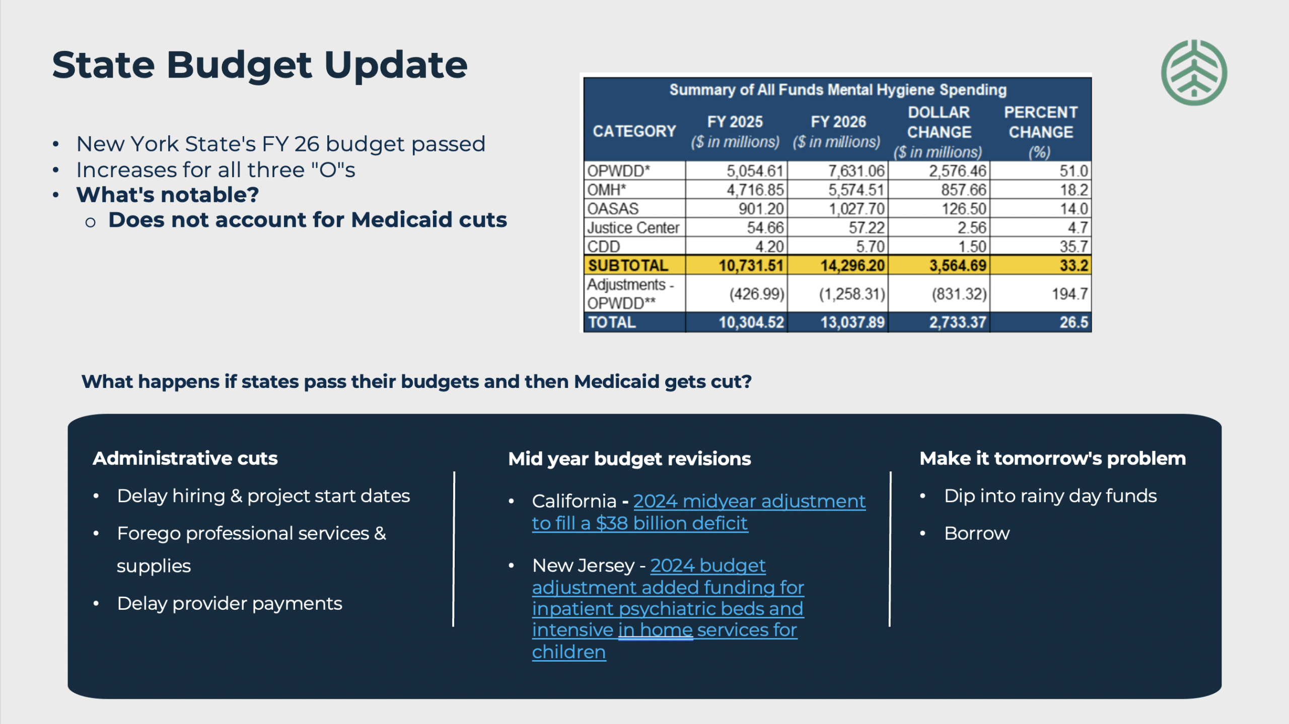This month, three key stories emerged: CMS is signaling a rollback of Medicaid waivers, crisis care continues to expand without stabilization infrastructure, and some state budgets—New York among them—are moving forward as if it’s business as usual.
