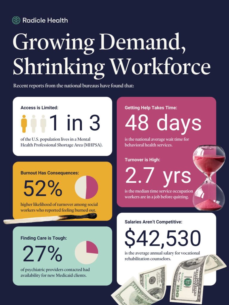 Over the past decade, the need for human services has grown significantly. Rising rates of depression, anxiety, substance use disorder, and suicide have placed immense pressure on behavioral health systems. At the same time, economic shifts, changes in workforce participation, and increasing disability claims have driven demand for vocational rehabilitation and related support services.